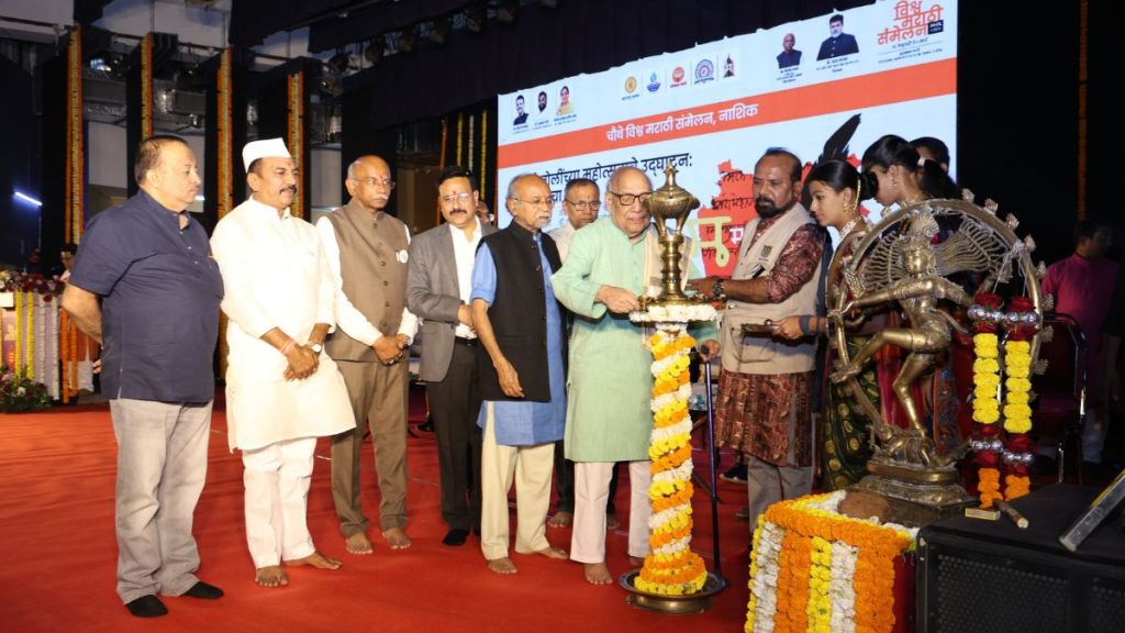 यावेळी मराठी भाषा विभागाचे सचिव डॉ. किरण कुलकर्णी, मराठा विद्या प्रसारक समाज संस्थेचे सरचिटणीस ॲड. नितीन ठाकरे, मराठी भाषा विकास विभागाचे संचालक डॉ. श्यामकांत देवरे, महाराष्ट्र राज्य साहित्य व संस्कृती मंडळाचे उपाध्यक्ष डॉ. प्रदीप ढवळ, अखिल भारतीय मराठी साहित्य संमेलनाचे माजी अध्यक्ष उत्तम कांबळे, डॉ. श्रीपाद जोशी, डॉ. मिलिंद जोशी, विश्वास ठाकूर आदी उपस्थित होते.