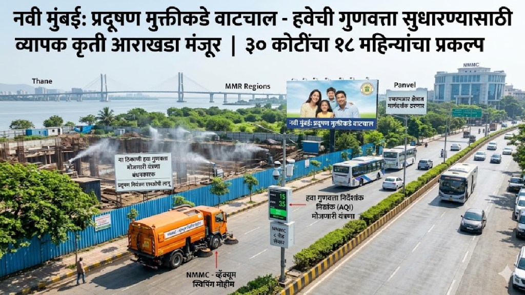 नवी मुंबई : झपाट्याने विस्तारत असलेल्या शहरात वाढत्या वायू प्रदूषणाच्या पार्श्वभूमीवर नवी मुंबई महानगरपालिकेने १८ महिन्यांचा व्यापक कृती आराखडा गुरुवारच्या महासभेत सर्वानुमते मंजूर केला. पीएम १० आणि पीएम २.५ सूक्ष्म कणांचे प्रमाण कमी करून हवेची गुणवत्ता सुधारण्यासाठी ३० कोटी रुपयांच्या ‘सघनकृती’ योजनेची अंमलबजावणी करण्यात येणार आहे. एमएमआर क्षेत्रासाठी हा प्रकल्प मार्गदर्शक ठरेल, असा विश्वास महापालिका आणि सभागृह नेते सागर नाईक यांनी व्यक्त केला.