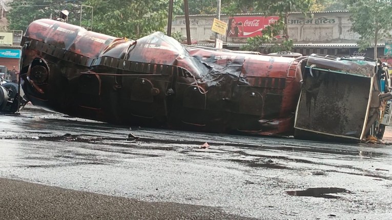 मुंबईकडून गुजरातच्या दिशेने भरधाव वेगाने जाणाऱ्या टँकरमध्ये कमी प्रमाणात ज्वलनशील पदार्थ असल्याने गळती होऊन रस्त्यावर पसरले. अपघातानंतर काही प्रमाणात आग लागली मात्र ती विजविण्यास स्थानिकांनी यश लाभले. सावधगिरीचा उपाय म्हणून पोलिसांनी मस्तान नाका उड्डाणपुलाखालील सेवा रस्त्यावरील वाहतूक बंद करून पर्यायी मार्गाने वळविण्यात आली आहे.