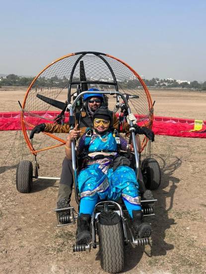 हडपसर येथील ग्लायिडग सेंटर येथे पॅरामोटरच्या साहाय्याने पाच हजार फुटांवरून त्यांनी पॅराजम्पिंग केले.