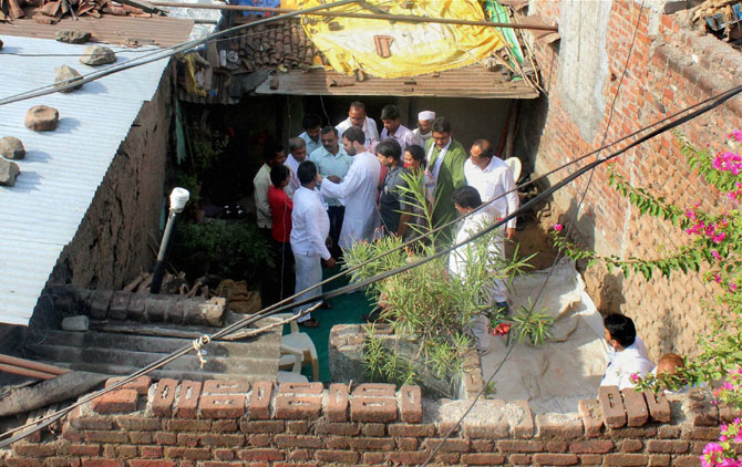 चार किलोमीटर पायी चालून ते शहापूरला पोहोचले. या गावात आत्महत्या करणाऱ्या शेतकऱ्याच्या घरी त्यांनी भेट दिली आणि त्यांच्या कुटुंबीयांशी संवाद साधला.(छाया: पीटीआय)
