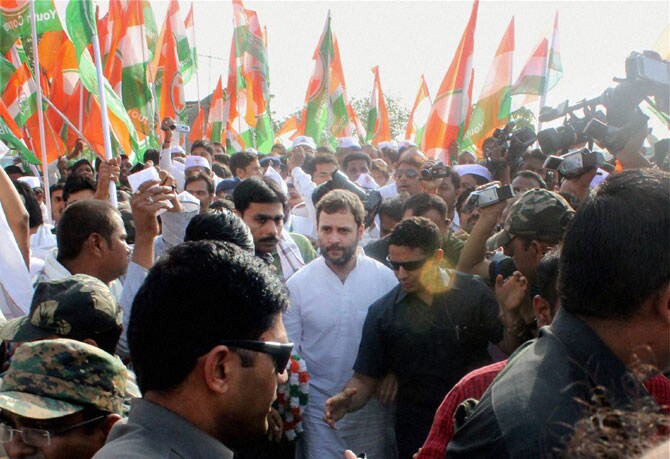 पदयात्रेत काँग्रेस कार्यकर्त्यांचाच भरणा अधिक होता. राहुल गांधी यांच्या निकट पोहोचण्याच्या स्पध्रेत अनेक ठिकाणी प्रचंड रेटारेटी झाली. (छाया: पीटीआय)