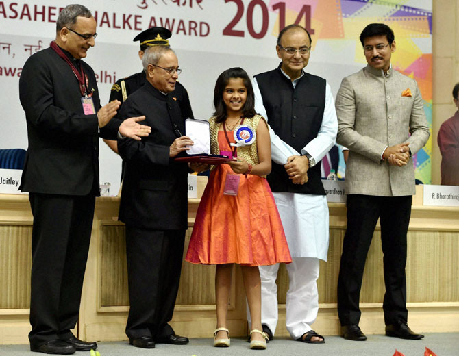 राष्ट्रपती प्रणब मुखर्जी यांच्या हस्ते रविवारी ६२व्या राष्ट्रीय चित्रपट पुरस्कारांचे वितरण करण्यात आले. (छायाः पीटीआय)