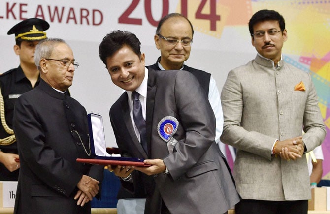 हैदर चित्रपटासाठी सुखविंदर सिंग याला सर्वोत्कृष्ट पार्श्वगायक पुरस्काराने सन्मानित करण्यात आले. (छायाः पीटीआय)