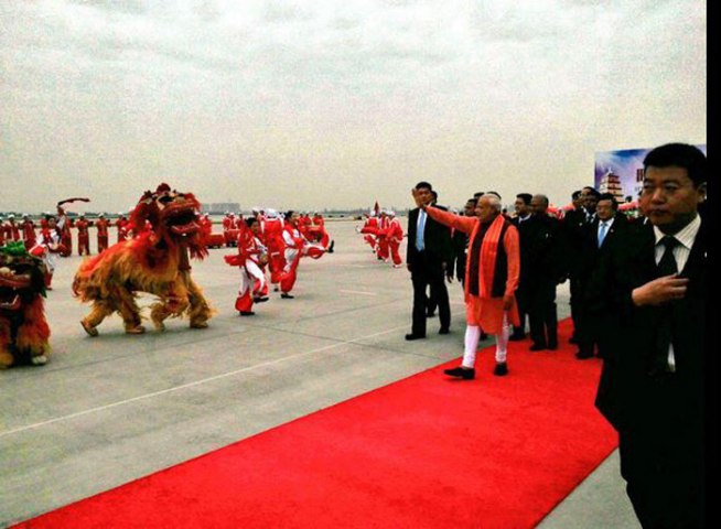 शियान येथील आंतरराष्ट्रीय विमानतळावर उतरल्यानंतर पारंपारिक चिनी नृत्याने पंतप्रधानांचे समारंभपूर्वक स्वागत करण्यात आले.