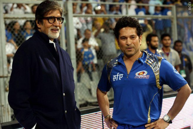 यावेळी मेगास्टार अमिताभ बच्चन आणि मास्टर ब्लास्टर सचिन तेंडुलकर यांनी एकमेकांची भेट घेतली. (छाया सौजन्यः बीसीसीआय/ आयपीएल)