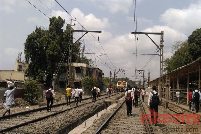 ठाणे, कळवा रेल्वे स्थानकात प्रवाशांचा मोठ्या प्रमाणात खोळंबा झाला असून सर्व प्लॅटफॉर्म आणि रेल्वे ट्रॅक गर्दीने फुलून गेले. (छाया – दीपक दामले)