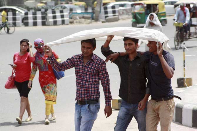 गुरगाव येथे पारा चढल्याने रविवारी नागरिकांना कापडाचा आधार घ्यावा लागला. (छायाः पीटीआय) -