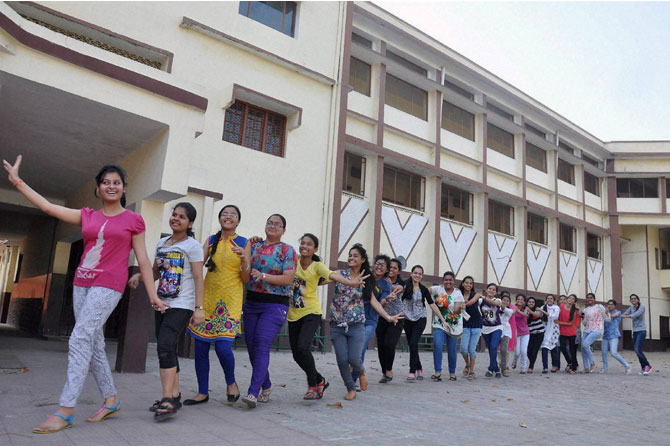 केंद्रीय माध्यमिक शिक्षण मंडळातर्फे (सीबीएसई) घेण्यात आलेल्या मार्च, २०१५च्या दहावी परीक्षेत ९९.४६ टक्के निकाल नोंदवीत महाराष्ट्राने भरीव कामगिरी नोंदवली आहे. निकाल कळल्यानंतर आनंद साजरा करताना विद्यार्थिनी. (छायाः पीटीआय)