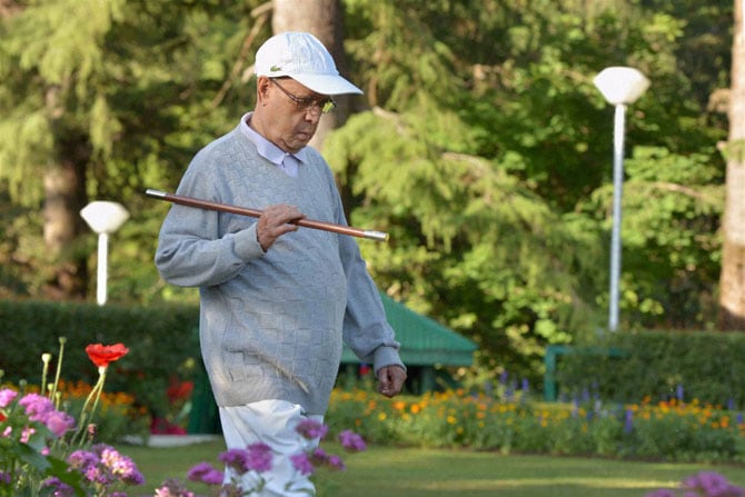 सिमला येथील रिट्रिटमध्ये सकाळचा फेरफटका मारताना राष्ट्रपती प्रणव मुखर्जी. (छायाः पीटीआय)