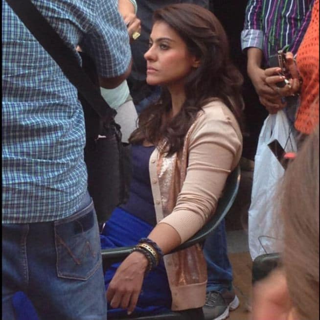 ब्रेकमध्ये सेटवर बसलेली काजोल. (छाया सौजन्यः ट्विटर)