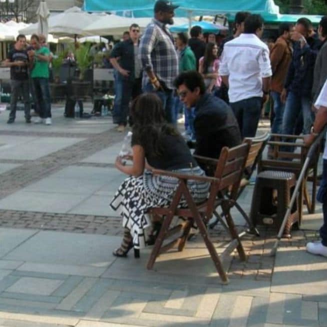 बल्गेरियात सेटवर टिपलेले काजोल आणि शाहरुखचे छायाचित्र. (छाया सौजन्यः ट्विटर)