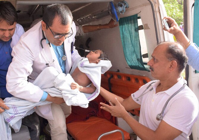 राजस्थान येथील अजीगड येथे तब्बल ५० फूट खोल बोअरवेलमध्ये अडकलेल्या सात वर्षीय मुलीला बाहेर काढण्यात ३० तासांनंतर यश आले. या चिमुरडीवर रुग्णालयात उपचार सुरु करण्यात आले आहेत. (छायाः पीटीआय) -