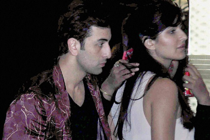 बॉलीवूडमधील चर्चित जोडी रणबीर कपूर आणि कतरिना कैफ हे अर्जुन कपूरच्या बर्थडे पार्टीला उपस्थित होते. (छायाः पीटीआय)