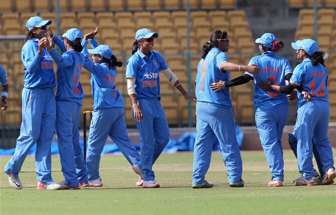 अष्टपैलू खेळाडू झुलन गोस्वामीच्या शानदार अर्धशतकाच्या जोरावर भारताने न्यूझीलंडविरुद्धच्या महिलांच्या एकदिवसीय क्रिकेट सामन्यात १७ धावांनी विजय मिळवला. विजयाचा आनंद साजरा करताना भारतीय महिला क्रिकेट संघ. (छायाः पीटीआय)