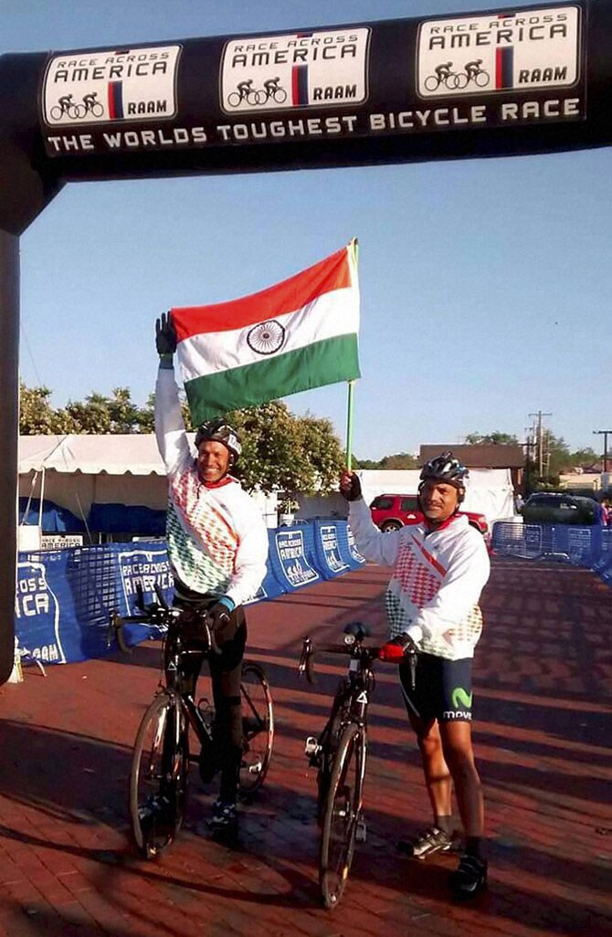 रेस अक्रॉस अमेरिका (रॅम) ही जगातील सर्वात कठीण सायकल शर्यत यशस्वीरित्या पूर्ण करण्यात नाशिकचे महेंद्र व हितेंद्र महाजन हे डॉक्टर बंधू यशस्वी ठरले आहेत. महाजन बंधूंनी आठ दिवस १४ तास आणि ५५ मिनिटांत ही शर्यत पूर्ण केली. (छायाः पीटीआय)