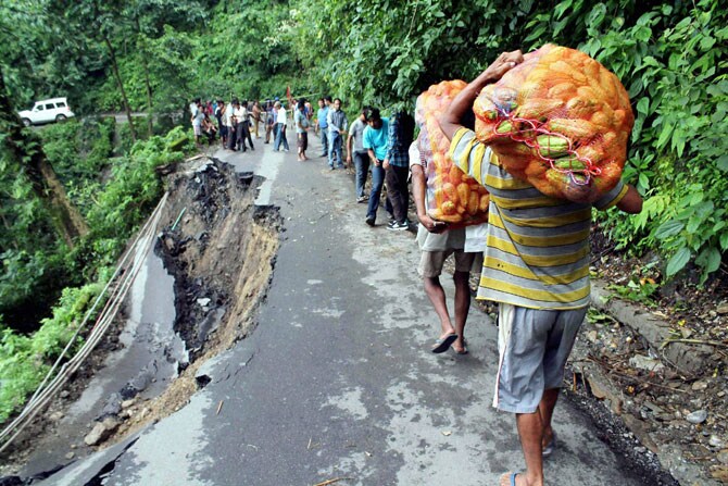 सिलिगुरी येथे दरड कोसळल्यानंतर त्याची पाहणी करण्यासाठी स्थानिक नागरिकांची गर्दी जमली होती. (छायाः पीटीआय) -