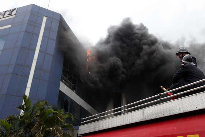 पावणे एमआयडीसीतील सोनी कंपनीला रविवारी सकाळी सातच्या सुमारास आग लागली. (छायाः नरेंद्र वास्कर)