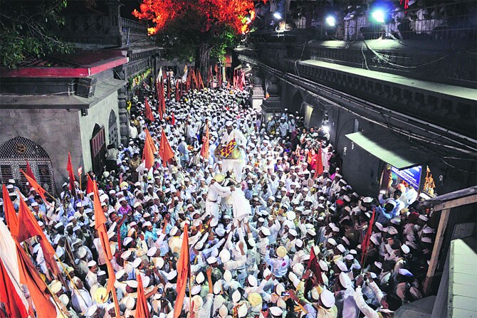 ‘माउली-माउली’ असा अखंड घोष.. वैष्णवांकडून होणारा भक्तिकल्लोळ अन् उत्साही व वैभवी सोहळ्याने संतश्रेष्ठ ज्ञानेश्वर माउलीच्या पालखीने श्रीक्षेत्र आळंदीतून गुरुवारी रात्री साडेअकराच्या सुमारास पंढरपूरकडे प्रस्थान ठेवले. (छायाः राजेश स्टीफन)