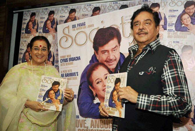 सोसायटी मासिकाच्या अंकावरील मुखपृष्ठाचे प्रकाशन करताना बॉलिवूड अभिनेता शत्रूघ्न सिन्हा आणि त्यांची पत्नी अभिनेत्री पूनम. (छायाः पीटीआय)