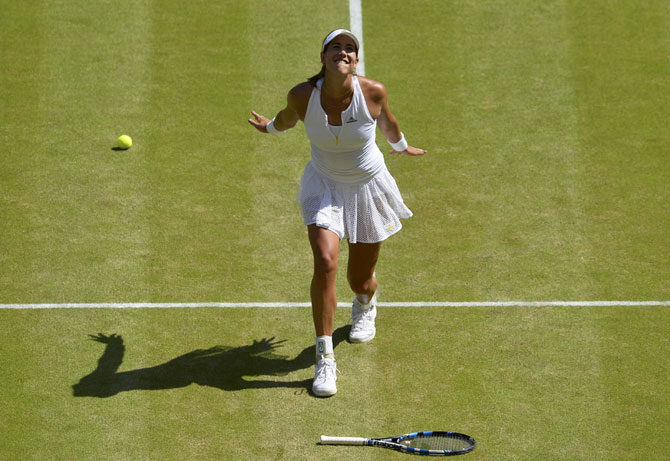 तडाखेबंद खेळाच्या जोरावर गार्बिनने अॅग्निझेस्का रडवानस्कावर मात करत विम्बल्डन टेनिस स्पर्धेची अंतिम फेरी गाठली. अंतिम लढतीत गार्बिनसमोर बलाढय़ सेरेनाचे आव्हान असणार आहे. (छायाः पीटीआय)