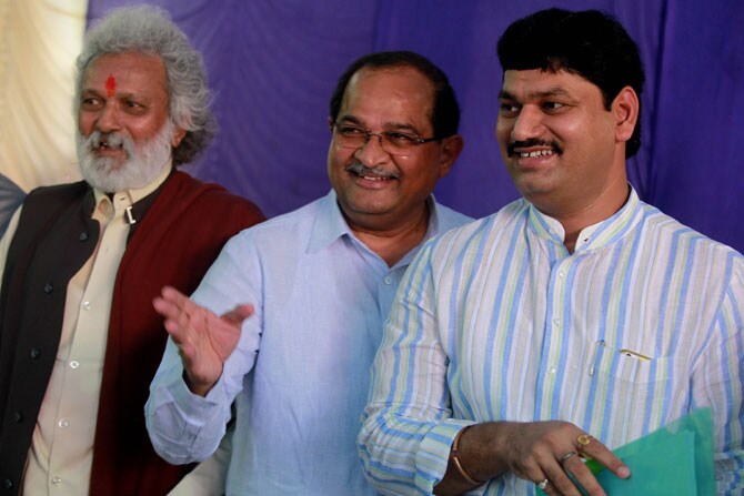 विधिमंडळ अधिवेशनाच्या पार्श्वभूमीवर मुंबईत रविवारी विरोधकांची बैठक झाली. याला विरोधी पक्षनेते राधाकृष्ण विखे-पाटील, धनंजय मुंडे, व जोगेंद्र कवाडे उपस्थित होते. (छायाः केविन डिसूझा)