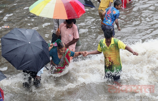 जोरदार पावसामुळे मुंबईची जीवनवाहिनी म्हणून ओळखली जाणारी रेल्वेसेवा पुर्णपणे ठप्प झालेली पहायला मिळाली. (छाया- प्रशांत नाडकर)