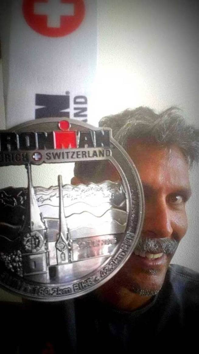 जगातील कठीण ट्रायलॉथॉन स्पर्धांपैकी एक असणाऱ्या झुरीच येथील ट्रायलॉथॉन स्पर्धेत मॉडेल आणि अभिनेता असणाऱ्या मिलिंद सोमणने बाजी मारली आहे. विशेष म्हणजे वयाच्या ५०व्या वर्षी मिलिंद सोमणने शारीरिक क्षमतेचा कस पाहणारी ही स्पर्धा पूर्ण करून दाखविली. (छायाः मिलिंद सोमन फेसबुक)