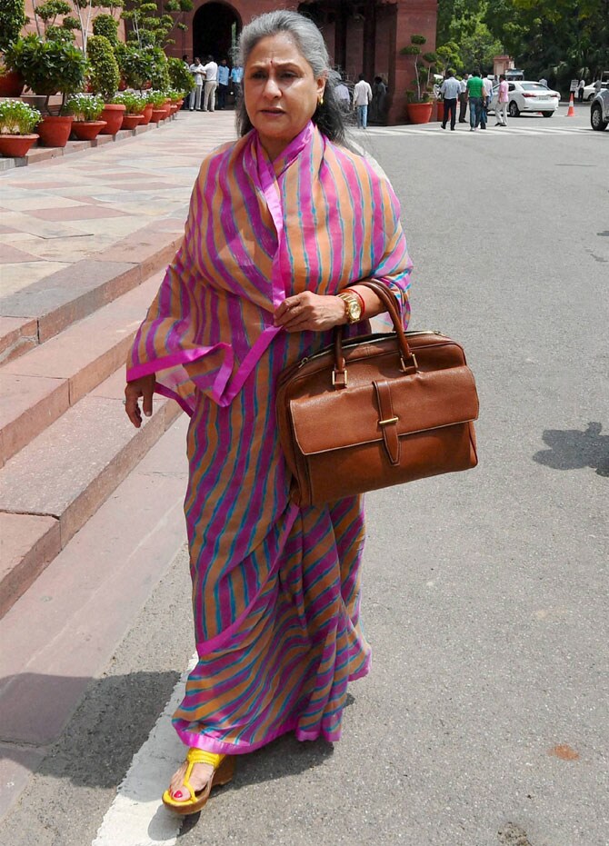संसद परिसरात समाजवादी पक्षाच्या खासदार जया बच्चन. (छायाः पीटीआय)