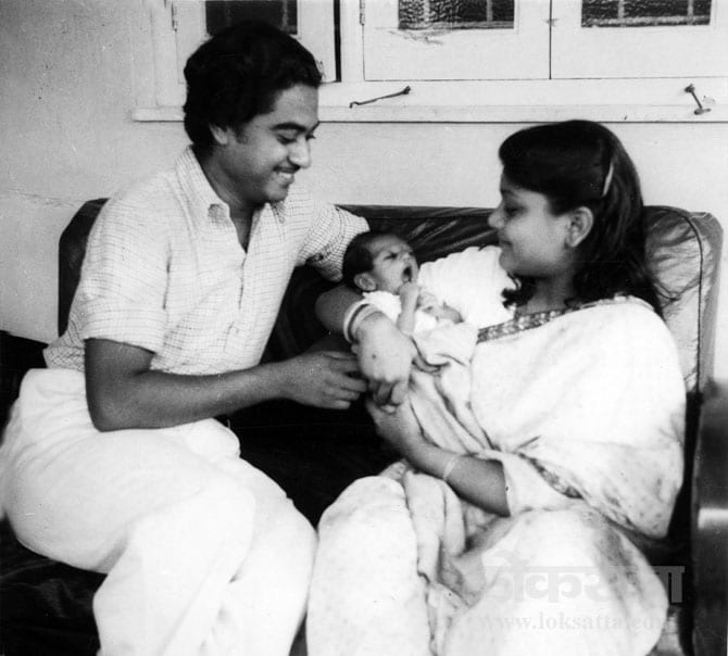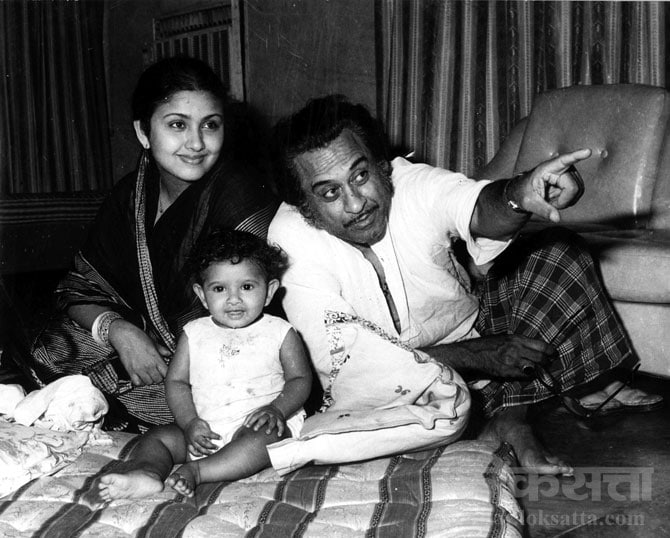 किशोर कुमार यांची चौथी पत्नी लिना चंदावरकर आणि मुलगा सुमीत.