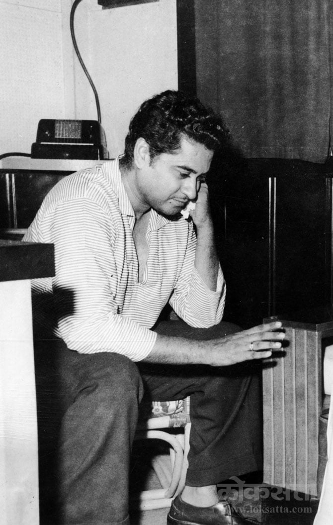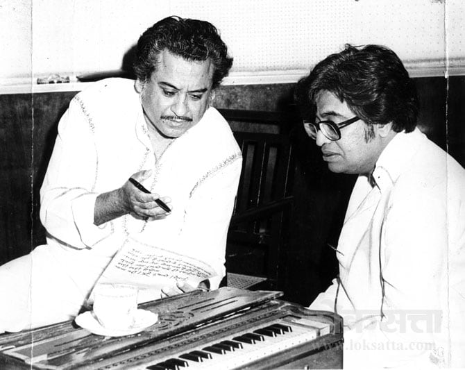 गाण्याची चाल तयार करताना किशोर कुमार आणि संगीत दिग्दर्शक हृदयनाथ मंगेशकर.