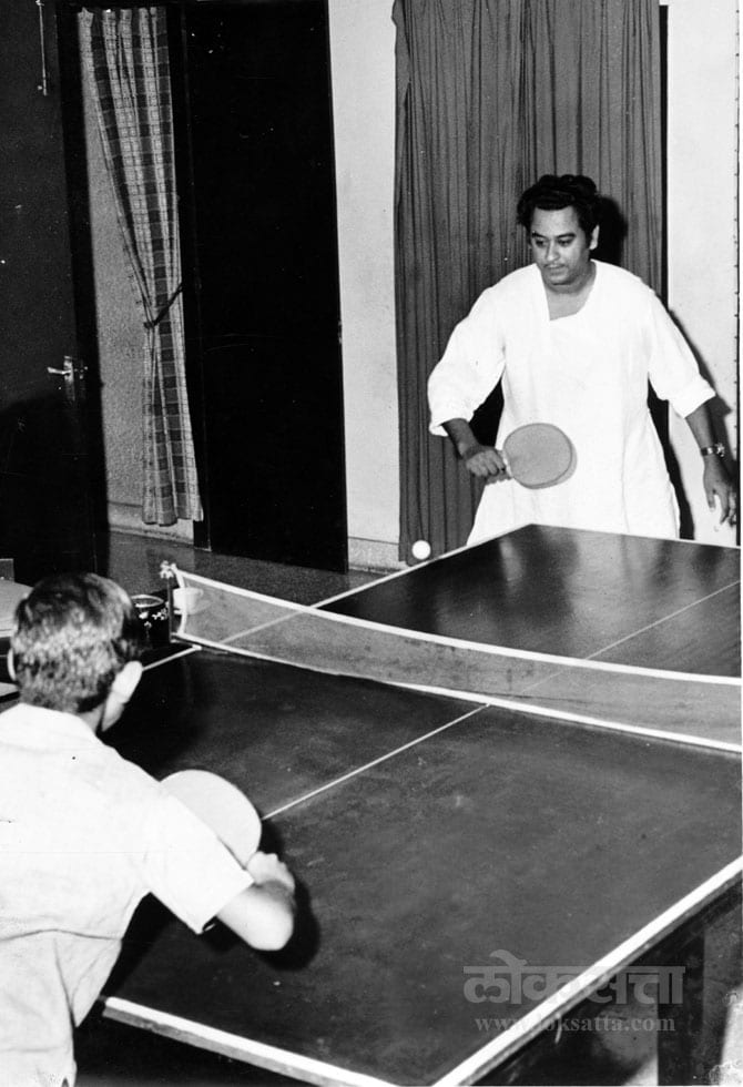 टेबल टेनिसवर आपला हात आजमावताना किशोर कुमार.