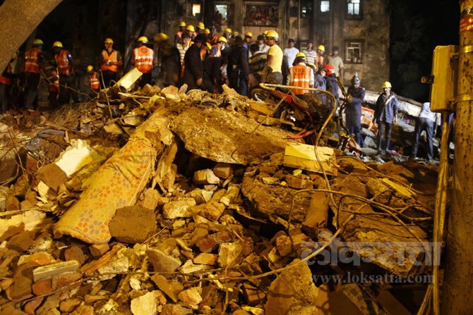 ५० वर्षे जूनी कृष्णा निवास ही इमारत कोसळली असून यात १२ जणांचा दुर्दैवी मृत्यू झाला असून, सातजण जखमी झाले आहेत. (छायाः दीपक जोशी) -