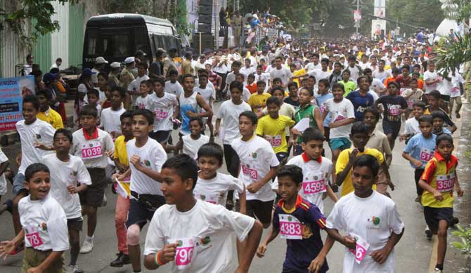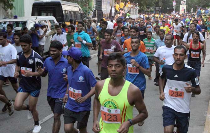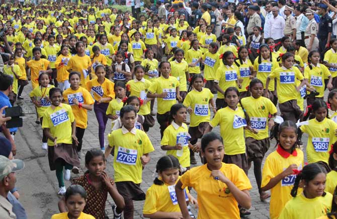 ठाणे महापौर वर्षा मॅरेथॉन मध्ये ठाणे स्वच्छ व हिरवेगार करुया,मुली वाचवा ,झाडे लावा झाडे जगवा असा सामाजिक संदेश देण्यात आला. (छायाः दीपक जोशी)