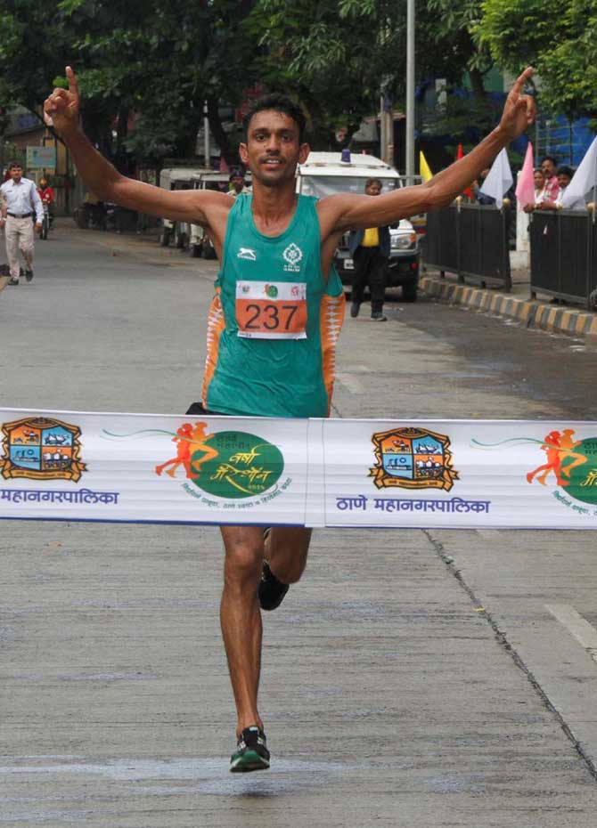 पुरुषांच्या २१ किलोमीटरच्या शर्यतीत मूळच्या हरयाणाच्या जयवीरने १ तास ०८ मिनिटे १२.९ सेकंदाची वेळ नोंदवत बाजी मारली. ३००० मीटर स्टीपलचेस शर्यतीतील माजी राष्ट्रीय विजेत्या जयवीरने पहिल्याच प्रयत्नात जेतेपद पटकावले. (छायाः दीपक जोशी)