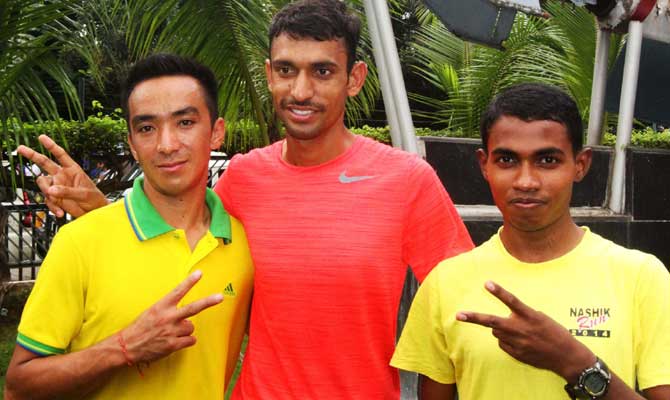पुण्याच्या बॉम्बे इंजिनीअरिंग ग्रुप अॅण्ड सेंटरच्या अनिश थापाने १ तास ०८ मिनिटे ४३.५ सेकंदाची, तर नाशिकच्या भोसला साई सेंटरच्या कांतीलाल कुंभारने १ तास ०९ मिनिटे २२.७ सेकंदाची वेळ नोंदवून अनुक्रमे दुसरे व तिसरे स्थान पटकावले. (छायाः दीपक जोशी)