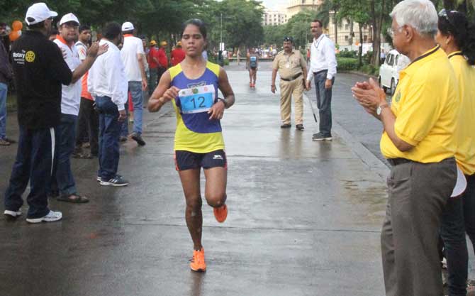 महिलांच्या १५ किलोमीटर शर्यतीत मनीषाने ५८ मिनिटे १९.२ सेकंदाची वेळ नोंदवून अव्वल स्थान पटकावले. (छायाः दीपक जोशी)