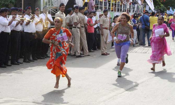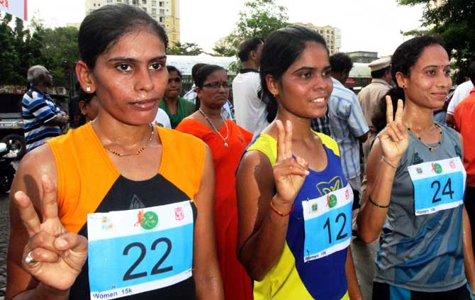 मनिषाच्या पाठोपाठ पश्चिम रेल्वेच्या नीलम राजपूत (१:००: ७ सेकंद) आणि विजयमाला पाटील (१:००: ४३ सेकंद) यांनी अनुक्रमे दुसरे व तिसरे स्थान मिळवले. (छायाः दीपक जोशी)