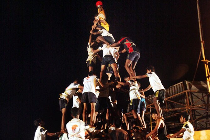 येत्या ६ सप्टेंबर रोजी जन्माष्टमी निमित्त बोरीवली, मागाठणे येथे १२ वर्षाच्या चिमुरड्यासह सराव करताना गोविंदा पथक. (छाया-पीटीआय) -