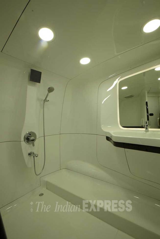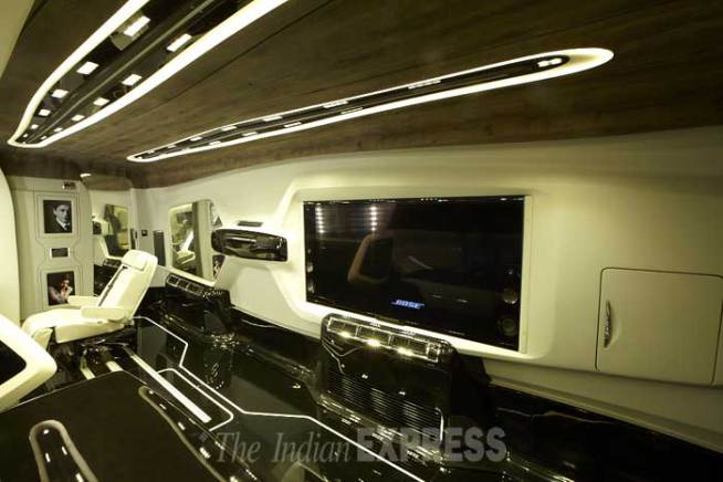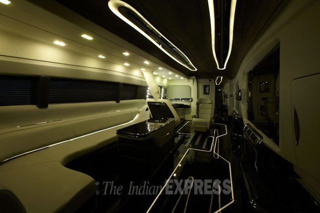 या व्हॅनचा तळभाग हा काचेचा असून वरच्या भागासाठी लाकडाचा उपयोग करण्यात आला आहे. यात विशेष मेक-अप चेअर, कपडे ठेवण्यासाठी वॉरड्रॉब, पॅन्ट्री, शय्यागृह, शॉवर अशा सुविधा आहेत.