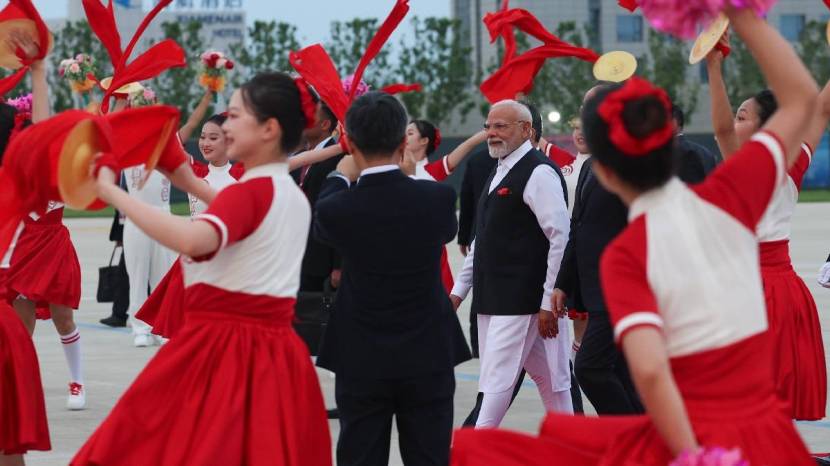 पंतप्रधान नरेंद्र मोदी यांचं चीनमधील तिआंजिन येथे आगमन झालं असून यावेळी त्यांचं जोरदार स्वागत करण्यात आलं आहे. (नरेंद्र मोदी सोशल मीडिया)