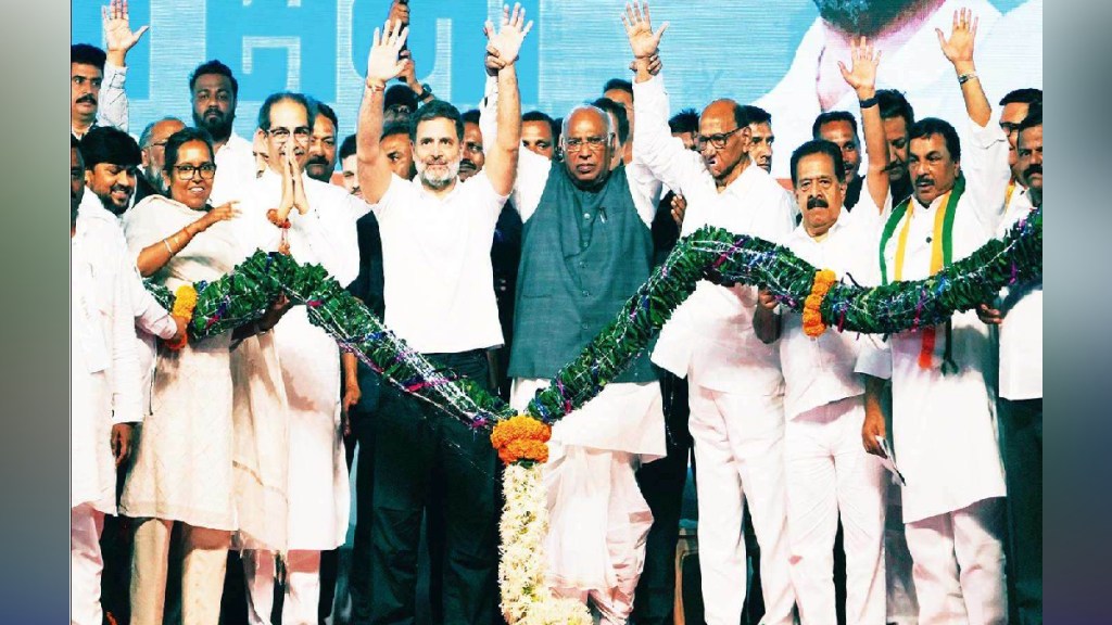 рдЗрдВрдбрд┐рдпрд╛ рдЖрдШрд╛рдбреАрдЪреА рд╕рдВрдпреБрдХреНрдд рдЬрд╛рд╣реАрд░ рд╕рднрд╛ рдмреБрдзрд╡рд╛рд░реА рд╡рд╛рдВрджреНрд░реЗ-рдХреБрд░реНрд▓рд╛ рд╕рдВрдХреБрд▓ (рдмреАрдХреЗрд╕реА) рдпреЗрдереЗ рдкрд╛рд░ рдкрдбрд▓реА. рдпрд╛ рд╕рднреЗрд▓рд╛ рдорд╣рд╛рд╡рд┐рдХрд╛рд╕ рдЖрдШрд╛рдбреАрддреАрд▓ рдШрдЯрдХрдкрдХреНрд╖ рд╡ рдорд┐рддреНрд░рдкрдХреНрд╖рд╛рдВрдЪреЗ рдЕрдиреЗрдХ рдиреЗрддреЗ рдЙрдкрд╕реНрдерд┐рдд рд╣реЛрддреЗ. рдпрд╛ рд╡реЗрд│реА рд░рд╛рд╣реБрд▓ рдЧрд╛рдВрдзреА рдпрд╛рдВрдиреА рд░рд╛рдЬреНрдпрд╛рддреАрд▓ рдорд╣рд┐рд▓рд╛рдВрд╕рд╛рдареА тАШрдорд╣рд╛рд▓рдХреНрд╖реНрдореАтАЩ рдпреЛрдЬрдирд╛ рдЖрдгрд┐ тАШрдЬрд╛рддреАрдирд┐рд╣рд╛рдп рдЬрдирдЧрдгрдиреЗтАЩрдЪреА рдШреЛрд╖рдгрд╛ рдХрд░рддрд╛рдирд╛ рд╕рд░рдХрд╛рд░рд╡рд░ рдЯреАрдХрд╛ рдХреЗрд▓реА. рдорд╣рд╛рдпреБрддреАрдЪреЗ рд╕рд░рдХрд╛рд░ рд▓рд╡рдХрд░рдЪ рдЬрд╛рдгрд╛рд░ рдЕрд╕реВрди, рдорд╣рд╡рд┐рдХрд╛рд╕ рдЖрдШрд╛рдбреАрдЪреЗ рд╕рд░рдХрд╛рд░ рд╕реНрдерд╛рдкрди рд╣реЛрдгрд╛рд░ рдЖрд╣реЗ. рд╣реЗ рд╕рд░рдХрд╛рд░ рдЖрд▓реНрдпрд╛рдирдВрддрд░ рд░рд╛рдЬреНрдпрд╛рддреАрд▓ рдорд╣рд┐рд▓рд╛рдВрдЪреНрдпрд╛ рдЦрд╛рддреНрдпрд╛рдд рджрд░рдорд╣рд╛ рей,режрежреж рд░реБрдкрдпреЗ тАШрдЦрдЯрд╛ рдЦрдЯреН.. рдЦрдЯрд╛ рдЦрдЯреН… рдЦрдЯрд╛ рдЦрдЯреН… тАЩ рдЬрдорд╛ рд╣реЛрддреАрд▓. рд╣реА рдпреЛрдЬрдирд╛ рдЬрд╛рд╣реАрд░ рдХрд░рдгреНрдпрд╛рдорд╛рдЧреЗ рдорд╣рд┐рд▓рд╛рдВрдирд╛ рдпрд╛ рд╕рд░рдХрд╛рд░рдордзреНрдпреЗ рдкреЛрд╣реЛрдЪрд▓реЗрд▓реА рдорд╣рд╛рдЧрд╛рдИрдЪреА рдЭрд│, рдмреЗрд░реЛрдЬрдЧрд╛рд░реАрдЪреНрдпрд╛ рдЭрд│реЗрддреВрди рджрд┐рд▓рд╛рд╕рд╛ рдорд┐рд│рд╛рд╡рд╛, рд╣рд╛ рдЙрджреНрджреЗрд╢ рдЕрд╕рд▓реНрдпрд╛рдЪреЗ рд░рд╛рд╣реБрд▓ рдЧрд╛рдВрдзреА рдореНрд╣рдгрд╛рд▓реЗ.