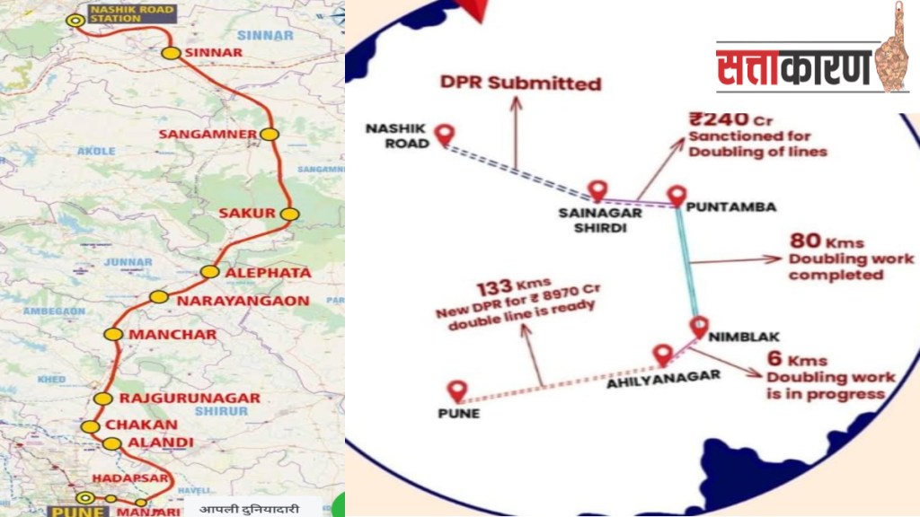 या सगळ्या पार्श्वभूमीवर मागील आठवड्यात संसदेच्या अधिवेशनात रेल्वेमंत्र्यांनी प्रस्तावित संगमनेर मार्गात बदल करून नव्याने पुणे-अहिल्यानगर-शिर्डी-पुणतांबा -नाशिक असा उफराटा मार्ग घोषित केला. त्यासाठी जीएमआरटी (जुन्नर) प्रकल्पाचे कारण पुढे करण्यात आले. खासदार अमोल कोल्हे यांनी संसदेतच आक्रमकपणे त्यावर आक्षेप घेतला. आता केंद्र सरकार काय भूमिका घेते याकडे तीन्ही जिल्ह्याचे लक्ष लागले आहे.
