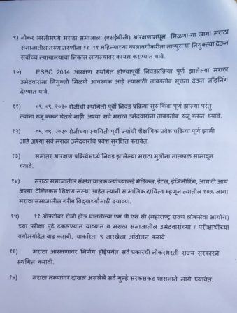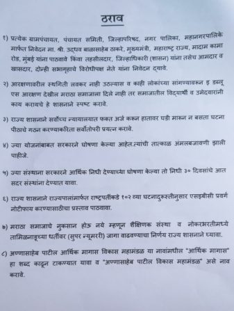 यावेळी विनायक मेटे म्हणाले की, मराठा समाजाच्या आरक्षणाच्या बैठकीत आज दिवसभरात अनेक मुद्द्यांवर चर्चा झाली. या बैठकीत एकूण २५ ठराव करण्यात आले. या ठरावाची दखल राज्य सरकारने न घेतल्यास समाज १ नोव्हेंबर पासून रस्त्यावर उतरणार असल्याचा इशाराही त्यांनी यावेळी दिला.
