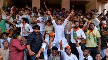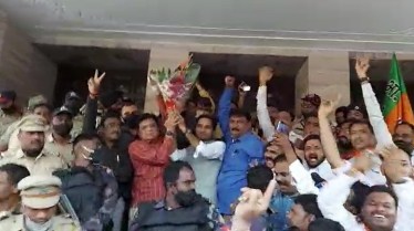 भाजपचे नेते माजी खासदार किरीट सोमय्या यांचं पुणे महापालिकेत जंगी स्वागत करण्यात आलं. तसेच पुणे महानगरपालिकेच्या ज्या पायरीवर त्यांना शिवसैनिकांकडून धक्काबुक्की झाली, तिथेच भाजपाच्या वतीने सोमय्यांचा सत्कार करण्यात आला. यावेळी भाजपाचे सभागृह नेते गणेश बिडकर आणि नगरसेवक उपस्थित होते. यावेळी पालिकेबाहेर जोरदार घोषणाबाजी करण्यात आली.