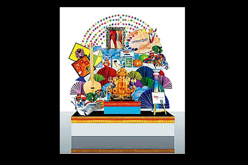 जिलब्या मारुती मंडळासाठी जीवन यांनी आतापर्यंत केलेल्या रथांचे वेगळेपण एकत्रितरीत्या दाखवून क्षितिज याने ‘कला स्मृती रथ’ केला आहे. वारा घेण्यासाठी वापरले जाणारे कागदी पंखे, भिरभिरे, पतंग, पत्र्यावर केलेले रंगकाम, पुलंना अभिवादन करताना रथावरचे पुस्तक अशा सर्वच गोष्टींचा ‘कोलाज’ करण्यात आला आहे. ‘जीवन रणधीर यांना अभिवादन करण्याचा हा माझा प्रामाणिक प्रयत्न असल्याचे’ क्षितिज याने सांगितले. वडिलांसमवेत लहानपणापासूनच मी काम करतो आहे. मात्र, गेली सहा वर्षे सजावटीमध्ये मी खऱ्या अर्थाने योगदान दिले. आता वडिलांच्या निधनानंतर प्रथमच स्वतंत्ररीत्या काम करीत असल्याचे क्षितिजने सांगितले. तो ‘फिल्म अँड टेलिव्हिजन इन्स्टिटय़ूट ऑफ इंडिया’मध्ये (एफटीआयआय) कला दिग्दर्शन हा अभ्यासक्रम शिकत आहे. सध्या सर्व विद्यार्थी संपावर असल्यामुळे तेथील पोस्टर आणि बॅनर करण्याबरोबरच गणेश विसर्जनाचे रथ करण्याची दुहेरी जबाबदारी तो सांभाळत आहे.