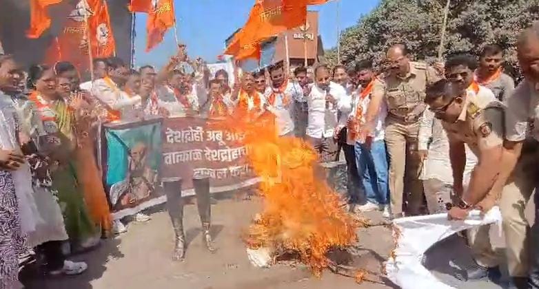अबू आझमी यांच्या विरोधात पुण्यातील स्वारगेट चौकात शिवसेना शहरप्रमुख नाना भानगिरे यांच्या नेतृत्वाखाली आंदोलन