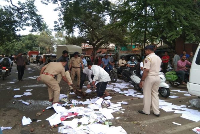 बुधवार रात्री पडलेल्या मुसळाधार पावसामुळे पुणेकरांचे जनजिवन विस्कळीत झाले. शहर आणि जिल्ह्यामध्ये भिंत पडून आणि पाण्याच्या लोंढ्यात वाहून गेल्याने १६ जणांचा मृत्यू झाला. सहा ते सात नागरिक बेपत्ता झाले आहेत. अरणेश्वर कॉर्नर, टांगेवाला कॉलनी भागातील नागरिकांना याचा मोठा फटका बसला. अनेकांचे संसार उघड्यावर पडले. मात्र या नागरिकांसाठी प्रशासनाकडून कोणत्याही प्रकारची मदत पोहोचली नाही असा आरोप करीत येथील नागरिकांनी रस्त्यावर कचरा टाकून आंदोलन केले. आंदोलनानंतर पुण्यातील पोलीस अधिकार्यांनी कचरा बाजूला केला.