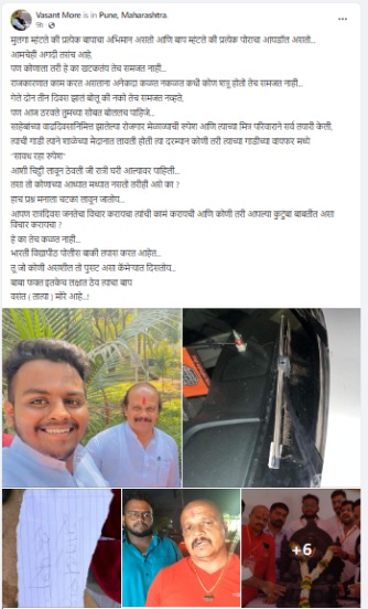 पोस्टच्या शेवटी मोरे यांनी रुपेशला धमकावणाऱ्याला सूचक शब्दामध्ये इशारा दिलाय. भारती विद्यापीठ पोलीस तपास करत आहेत, असं मोरे म्हणालेत. धमकावणाऱ्या व्यक्तीची झलक सीसीटीव्हीमध्ये कैद झाल्याचे संकेत मोरेंनी पोस्टमधून देताना, “तू जो कोणी असशील तो पुसट असा कॅमेऱ्यात दिसतोय,” असं म्हटलंय. पुढे याच धमकावणाऱ्याला इशारा देताना मोरेंनी, “बाबा फक्त इतकेच लक्षात ठेव त्याचा बाप वसंत मोरे आहे,” अशा शब्दांमध्ये इशारा दिलाय.