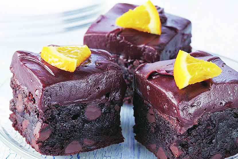 प्रेशर कुकरमधून ३ शिट्टय़ा काढून संत्री वाफवून घ्या. त्याच्या बिया काढून ती वाटून घ्या. त्याचा घट्टसर रस तयार व्हायला हवा. या रसामध्ये बेकिंग पावडर, सोडा, काजूची पूड, साखर आणि कोको पावडर घालून एकजीव करून घ्या. केकच्या अर्धा किलोच्या साच्यामध्ये थोडंसं बटर लावून त्यात हे मिश्रण ओता. ओव्हन १८० अंश सेल्सिअसवर तापवून घ्या. केक ४५-५० मिनिटे बेक करा. केकच्या मधोमध सुरी घालून तपासून पाहा की केक शिजलाय की नाही. सुरीला काही न चिकटता ती बाहेर आली की समजावे, केक नीट झाला आहे. साच्यातून बाहेर काढल्यावर या केकवर पिठी साखर शिंपडू शकता किंवा चॉकलेट सॉससुद्धा घालू शकता.